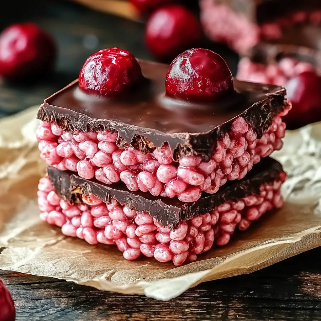 Chocolate Covered Cherry Rice Krispies Treats