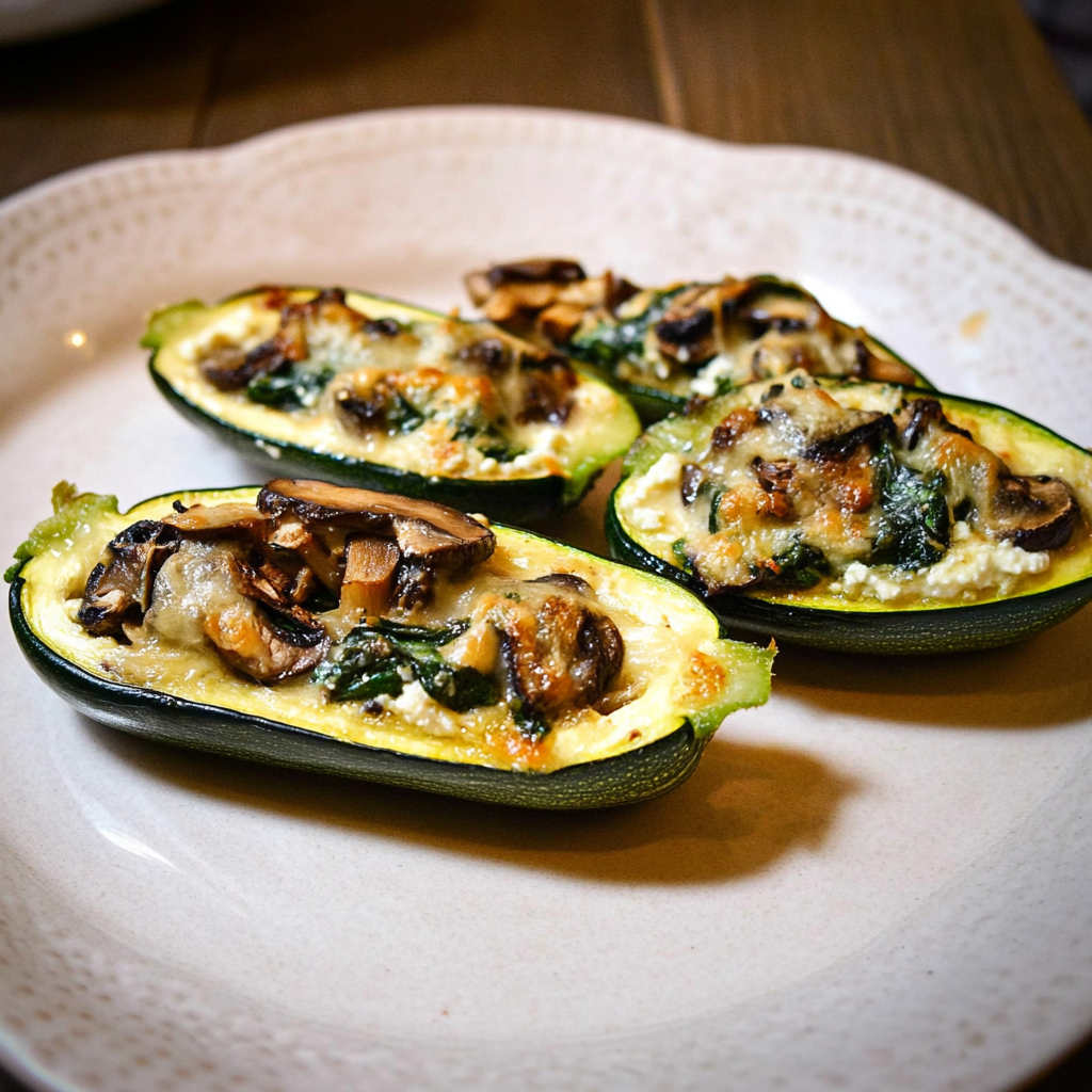 Spinach, Mushroom, and Ricotta Stuffed Zucchini Boats