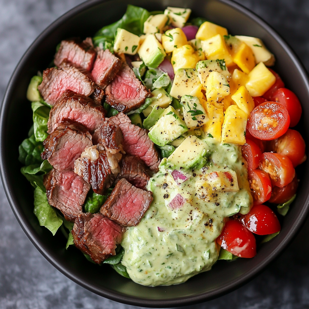 Steak Cobb Salad with Creamy Avocado Dressing {Whole30, Keto}