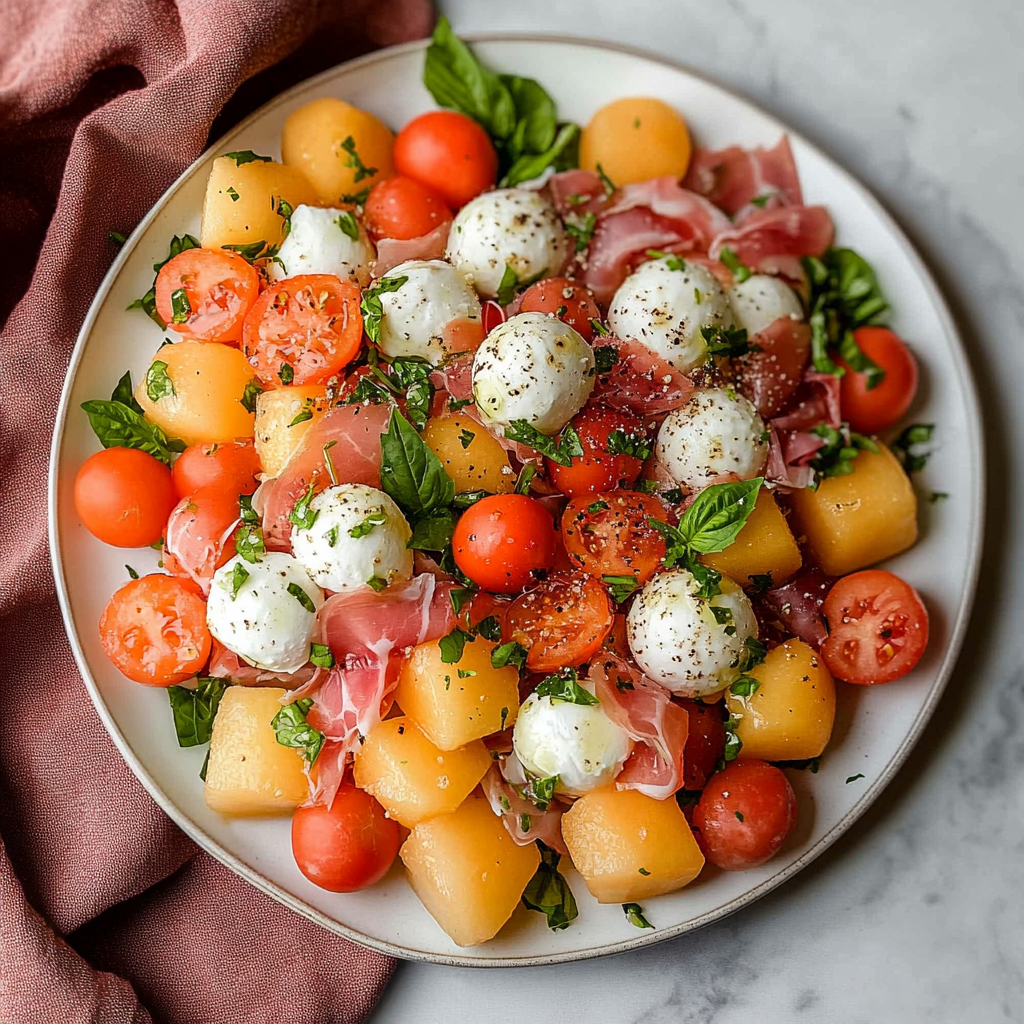 Refreshing Caprese Melon Salad with Prosciutto & Mozzarella