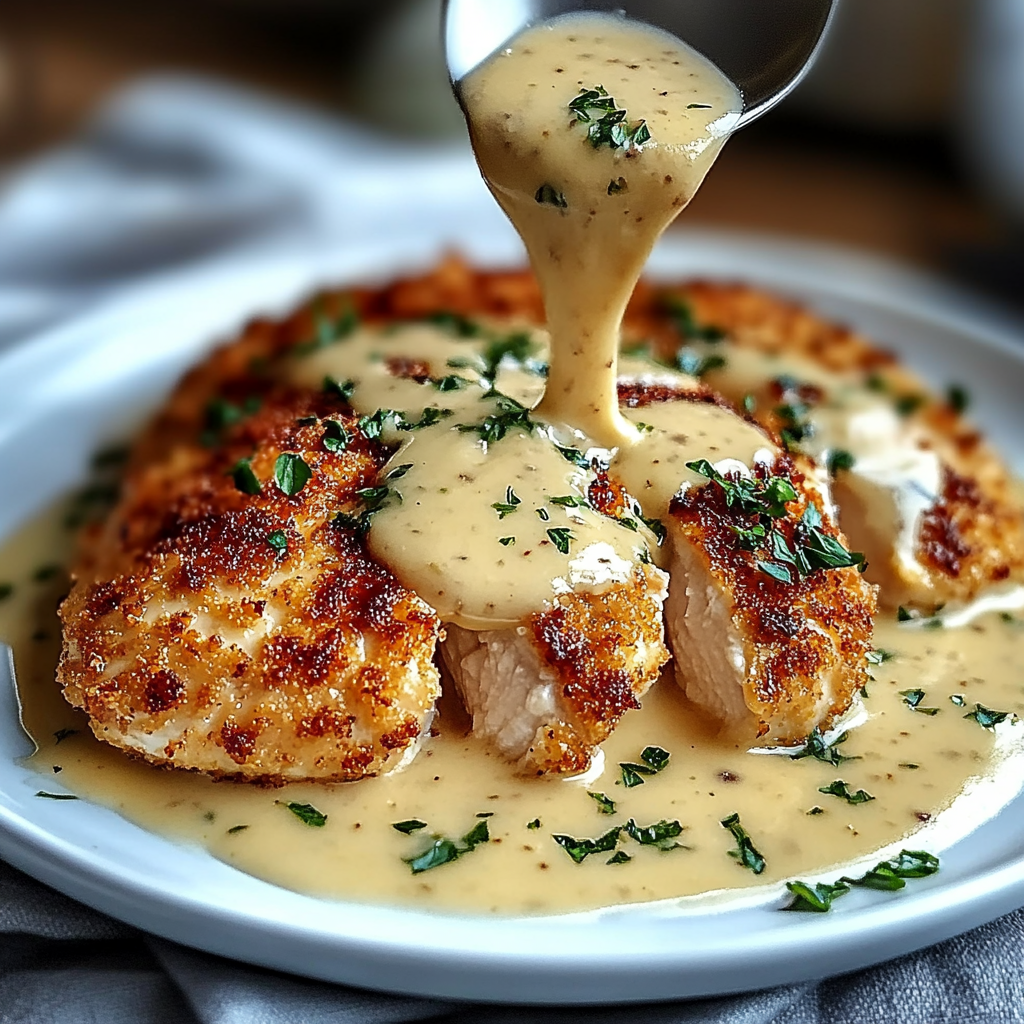 Crispy Parmesan Crusted Chicken with Creamy Garlic Sauce