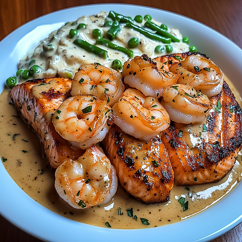 Spicy Cajun Shrimp and Salmon with Garlic Cream Sauce