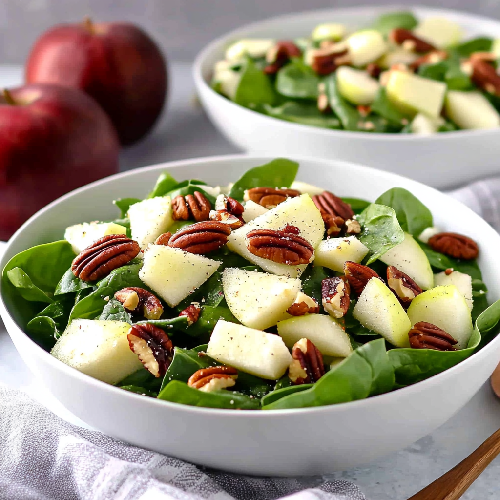 Delicious Simple Spinach Salad with Apples & Pecans