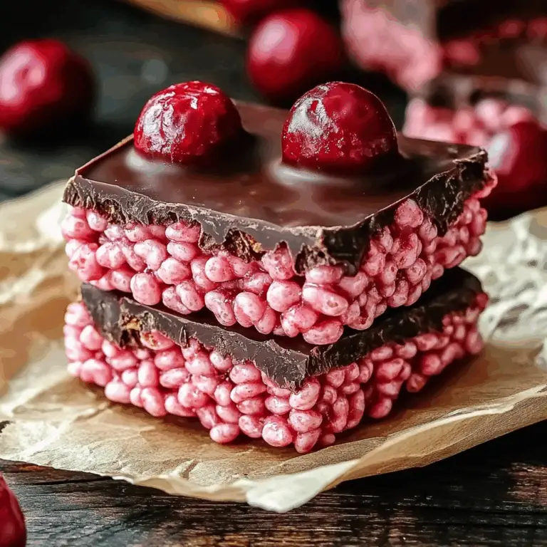 These Chocolate Covered Cherry Rice Krispies Treats are a delightful twist on the classic dessert! Perfect for holidays, parties, or simply satisfying your sweet tooth, this treat combines the fruity flavor of cherries with rich chocolate. It’s an indulgent dessert that brings joy to both kids and adults alike. The chewy and crunchy texture makes it a fun snack that everyone will love.