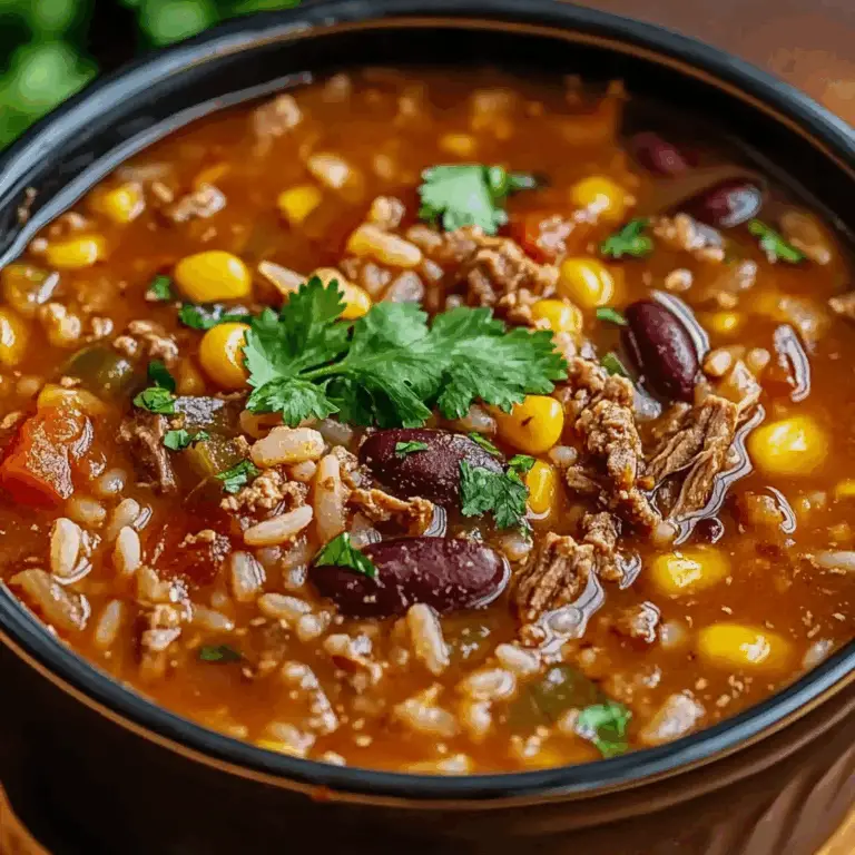 Mexican Beef and Rice Soup is a hearty and flavorful dish that captures the essence of traditional Mexican cuisine. Perfect for chilly evenings or gatherings with loved ones, this soup combines tender ground beef, hearty rice, and a medley of vibrant vegetables, all simmered in a rich beef broth. The blend of spices—cumin, chili powder, and smoked paprika—creates an authentic taste that will transport your taste buds straight to Mexico. Plus, it’s customizable, allowing you to adjust the heat level or add your favorite veggies. In just 45 minutes, you can serve up a nourishing meal that’s sure to become a family favorite.