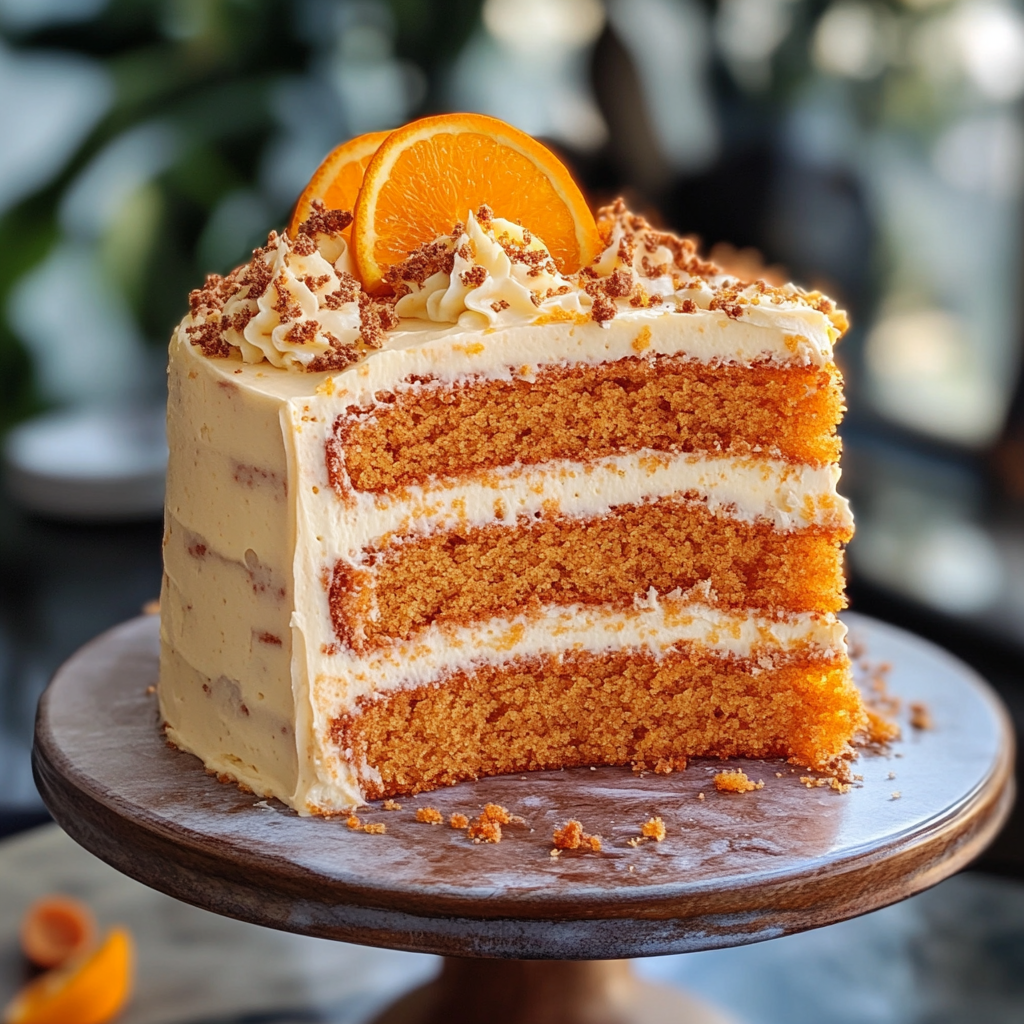 - Serve a generous slice of Orange Velvet Cake on a dessert plate, garnished with a fresh orange slice for a pop of color.