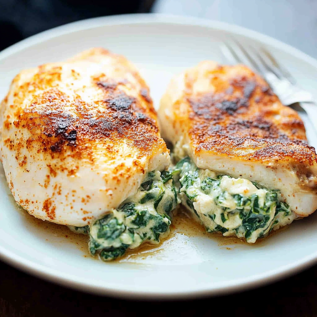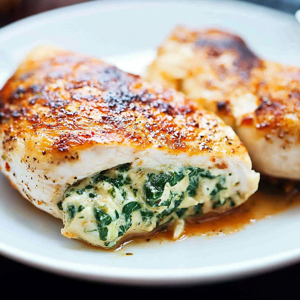 These Spinach Stuffed Chicken Breasts are a scrumptious dish combining creamy cheese, fresh spinach, and aromatic spices, making them an excellent choice for weeknight meals or special occasions.