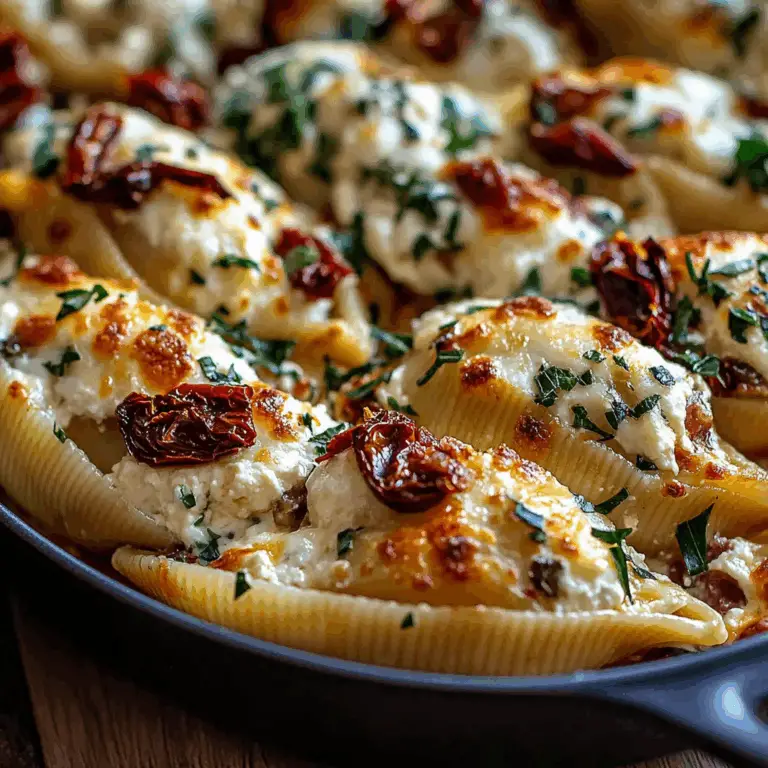 These Sun-Dried Tomato and Ricotta Stuffed Shells are a delightful comfort food choice, perfect for family dinners, meal prep, or special occasions. This dish combines creamy ricotta with sun-dried tomatoes, all packed into jumbo pasta shells and baked in rich marinara sauce. With melted mozzarella on top, this meal is sure to impress your guests and satisfy your taste buds.