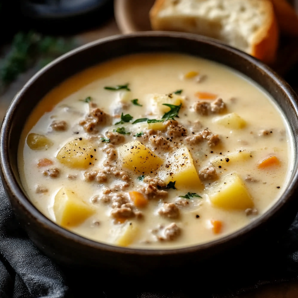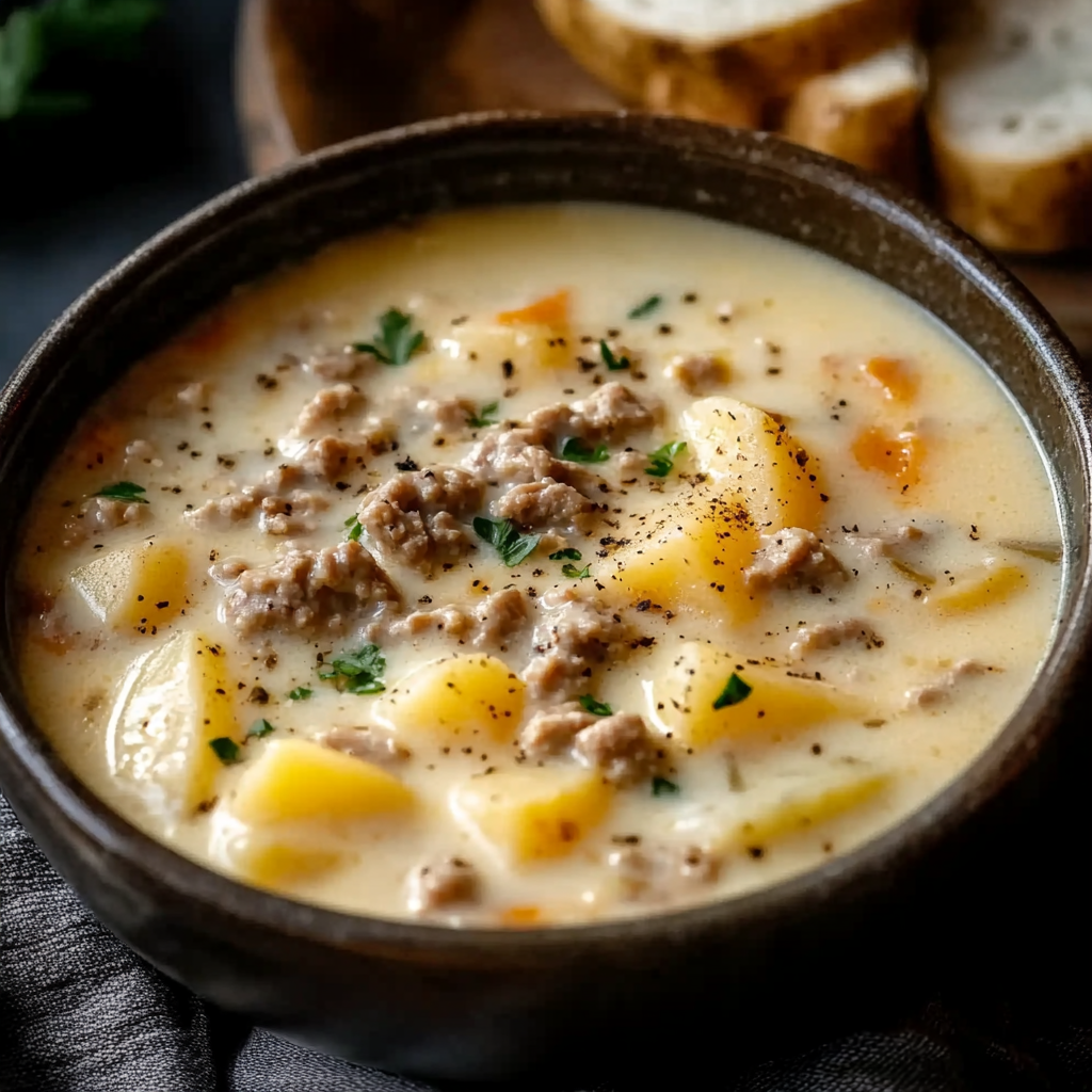This Wisconsin-Style Crockpot Creamy Potato & chicken hamburger Soup is a delightful blend of flavors, perfect for chilly evenings or family gatherings. The creamy broth, tender potatoes, and savory ground beef create a comforting dish that warms you from the inside out. Ideal for busy weeknights or casual get-togethers, this soup is sure to become a staple in your recipe collection.